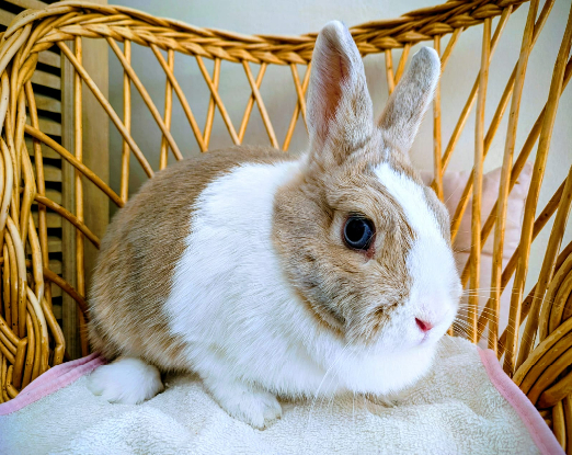 Nougatine vient tout juste d’arriver, elle est donc un peu stressée, ce qui est normal, mais elle se montre déjà curieuse. Nous pensons qu’elle ne sera pas une lapine particulièrement craintive une fois rassurée et installée ![]()