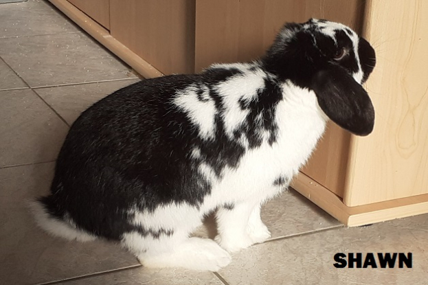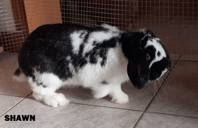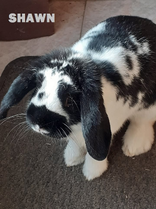 Shawn est un lapin mâle mini loop noir et blanc qui a atteint sa taille adulte. C’est un lapin nain adorable, très calme et très propre.