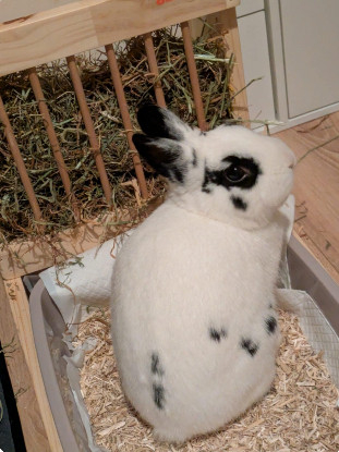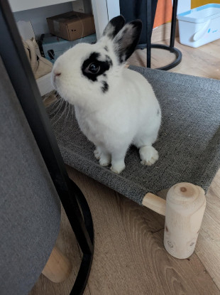 C'est un petit gourmand qui raffole du foin Timothy et de la verdure. Il n'hésite pas à poser ses petites pattes sur nos jambes et à nous lancer un regard implorant pour en avoir plus !