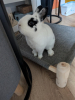 Il est habitué à faire ses besoins dans sa litière avec une alèse et n'est pas destructeur, il adore les cabanes en carton !