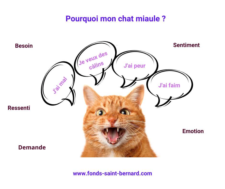 Le chat exprime ses émotions ou ses demandes à travers ses miaulements. Le plus fréquemment le chat va exprimer :