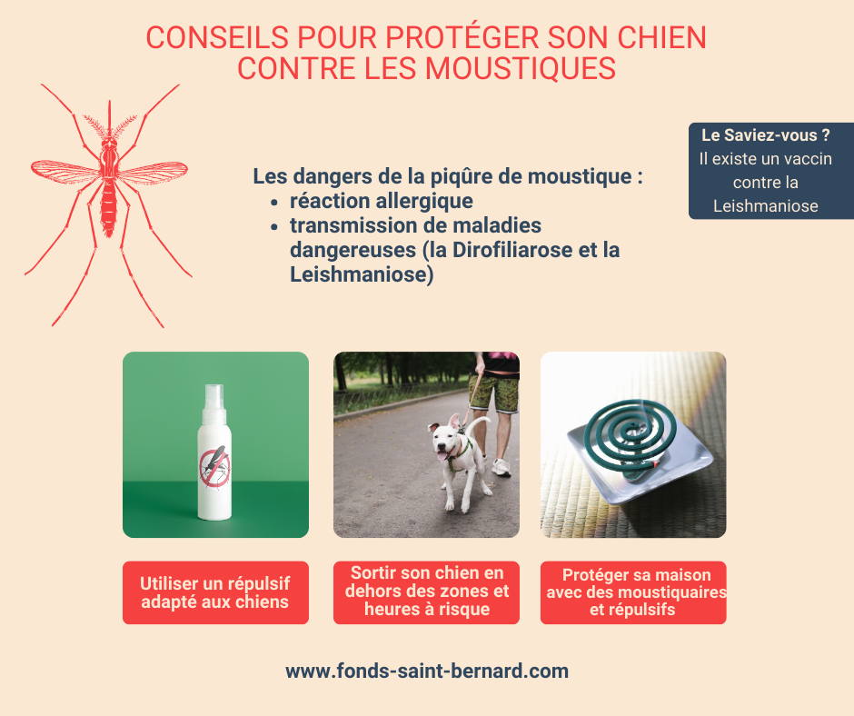 - Pensez à administrer un antiparasitaire externe à votre chien aux changements de saisons (efficaces contre les tiques et les puces mais également les insectes tels que les moustiques)