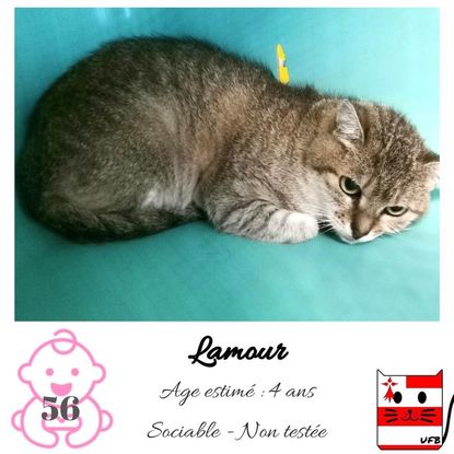 URGENCE EUTHANASIE ! Lamour est une femelle de 4 ans sociale qui vous attend dans une fourrière du 56. ATTENTION SORTIE AU PLUS TARD LE 05/06/2021 (avant euthanasie) ! Pour adopter, c'est facile : ➡️ On se rend sur la page facebook d'Urgence Fourrière de Bretagne (UFB) -> https://www.facebook.com/sosfourrieresbreizh/ ➡️ On vient en message privé sur la page UFB ➡️ On remplit le questionnaire ➡️ Si le questionnaire est validé, on se rend disponible pour la pré-visite ➡️ On se rend aussi disponible pour venir chercher le loulou en fourrière Les chats sortent de fourrière primo-vaccinés et identifiés. Restera à charge de l’adoptant le rappel de vaccin et la stérilisation qui est OBLIGATOIRE. Les femelles en fourrière ayant été trouvées dans la rue, il y a fort à parier que nombre d'entre elles en âge de l'être soient gestantes ... ---- A PROPOS D'URGENCE FOURRIERE DE BRETAGNE (UFB) Nous sommes un COLLECTIF d'ASSOCIATIONS DE PROTECTION ANIMALE (qui rassemble notamment Moustaches et Compagnie, Bêtes de Scène, les Pachas, Chats Libres de Berné, etc, etc....) Le BUT de ce collectif d'associations est donc de SORTIR ces animaux des fourrières surchargées en les faisant ADOPTER de manière LEGALE par des familles ou en leur trouvant des FAMILLES D'ACCUEIL lorsque des places en association se libèrent.