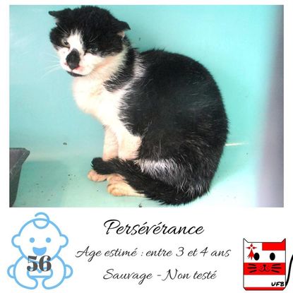 URGENCE EUTHANASIE ! Perseverance est un mâle de 3-4 ans sauvageon ( un comportement normal en fourriere) qui vous attend dans une fourrière du 56. ATTENTION SORTIE AU PLUS TARD LE 05/06/2021 (avant euthanasie) ! Pour adopter, c'est facile : ➡️ On se rend sur la page facebook d'Urgence Fourrière de Bretagne (UFB) -> https://www.facebook.com/sosfourrieresbreizh/ ➡️ On vient en message privé sur la page UFB ➡️ On remplit le questionnaire ➡️ Si le questionnaire est validé, on se rend disponible pour la pré-visite ➡️ On se rend aussi disponible pour venir chercher le loulou en fourrière Les chats sortent de fourrière primo-vaccinés et identifiés. Restera à charge de l’adoptant le rappel de vaccin et la stérilisation qui est OBLIGATOIRE. Les femelles en fourrière ayant été trouvées dans la rue, il y a fort à parier que nombre d'entre elles en âge de l'être soient gestantes ... ---- A PROPOS D'URGENCE FOURRIERE DE BRETAGNE (UFB) Nous sommes un COLLECTIF d'ASSOCIATIONS DE PROTECTION ANIMALE (qui rassemble notamment Moustaches et Compagnie, Bêtes de Scène, les Pachas, Chats Libres de Berné, etc, etc....) Le BUT de ce collectif d'associations est donc de SORTIR ces animaux des fourrières surchargées en les faisant ADOPTER de manière LEGALE par des familles ou en leur trouvant des FAMILLES D'ACCUEIL lorsque des places en association se libèrent.