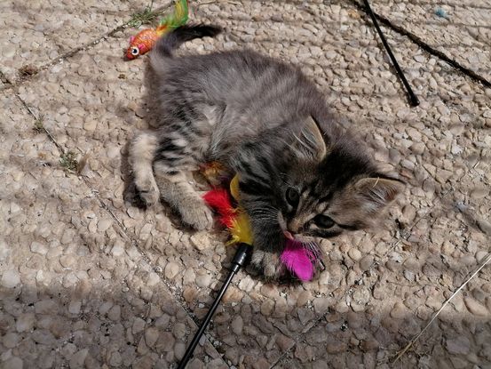 CALYPSO est un petite chatonne bien dans ses coussinets. CALYPSO sera adoptable seulement à partir de mi-juin mais peut être réservée dès maintenant. HISTOIRE : Arrivée au refuge âgé de quelques jours avec sa maman CALIOU, ses frères CALISSON et CALIMERO ainsi que ses sœurs CALI et CALINE. Femelle née le 23/03/2021 tigrée poils mi-longs Identifiée par puce / Vaccinée TCL / Mère testée FIV -et FeLV - / Déparasitée  OK chat / OK chien  OK enfants Ne connaît pas l'extérieur et ne réclame pas de sortir Caractère : curieuse, dynamique et joueuse. La famille idéale pour CALYPSO est une famille qui a pleins de séances de jeu à lui offrir  Vous êtes cette famille ?! Alors il suffit de remplir le formulaire ci-dessous : https://www.chat-quiberon.com/formulaire-dadoption/