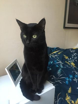 Watson : magnifique chat noir âgé approximativement d’un an ; nous l’avons sorti de fourrière en avril dernier.