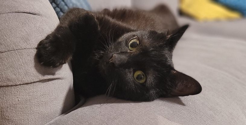 Je suis une vraie boule d’amour pot-de-colle ?! J’adore les câlins et je suis une machine à ronrons !