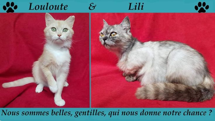 Lili est une belle minette, avec un petit nez retroussé et de grands yeux. C’est une vraie crème, proche des humains. Louloute est la fille de Lili. Un peu plus timide, mais sociable également, elle a la même petite bouille mignonne que Lili. Elles ont toujours vécu ensemble, nous souhaiterions leur offrir une nouvelle vie sans les séparer. Elles sont habituées à la vie de campagne. Elles seront disponibles après le sevrage de leurs chatons, et après leurs stérilisations. Les deux sont FIV/FELV négatifs Vous pouvez déjà venir les rencontrer dans leur famille d’accueil à BEGANNE (56). Formulaire de Pré Adoption : https://docs.google.com/forms/d/e/1FAIpQLSeO_7R3eIOTNdox-jdtJHhUttJ9VH_I3yX7LM086y9NS6fYtw/viewform?fbclid=IwAR3Dcm1EjUC9J_7VomZ-vkRMBUJ6m5wEDm0vAvCJsCUsJos1bRWCcVuuvtA