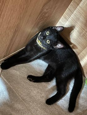 Sasuky est un petit moteur qui ronronne et est tres calin !! Elle adoore les calins dans les bras. Elle est à l adoption avec ses freres et soeurs tous noirs aussi.