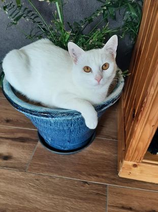 Si son pelage est froid comme la neige ❄️, son tempérament est aussi doux qu’une douce soirée d’été . Sushi, est une chatte qui saura vous faire craquer. En effet, elle adore se retrouver dans des positions saugrenues à chaque opportunité pour vous observer. ?