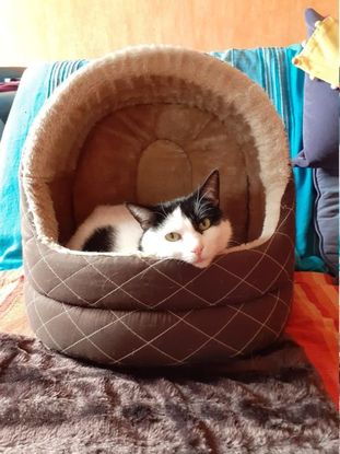Laya est censée avoir 14 ans, mais le vétérinaire qui l'a examinée pense qu'elle est plus jeune. Elle est en très bonne santé et son bilan sanguin est excellent . Madame a un léger embonpoint qu'elle cherche à perdre actuellement. Elle était juste stérilisée à son arrivée à l'association.