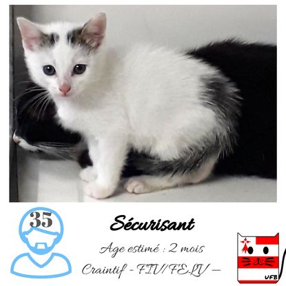 Sécurisant est un mâle de 2 mois craintif (un comportement normal en fourrière) qui vous attend dans une fourrière du 35. ATTENTION SORTIE AU PLUS TARD LE 25/06/2021 (avant euthanasie) !