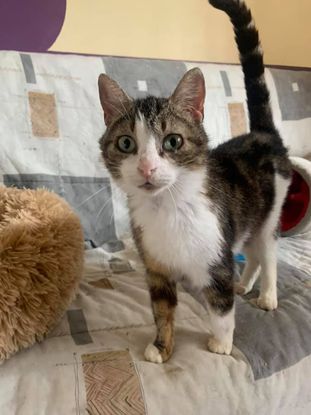 Minette errante récupéré il y'a quelque semaine,elle va très bien et en parfaite santé,elle est très caline et très gentille,ne demande qu'a etre aimer et poupoullier par sa futur famille.