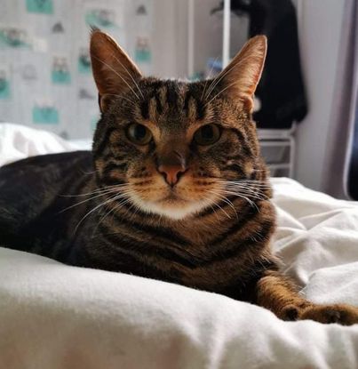 SITCO est un adorable matou, trouvé errant avec la patte coincée dans son collier, ce qui lui a provoqué une blessure au cou importante et une grande maigreur