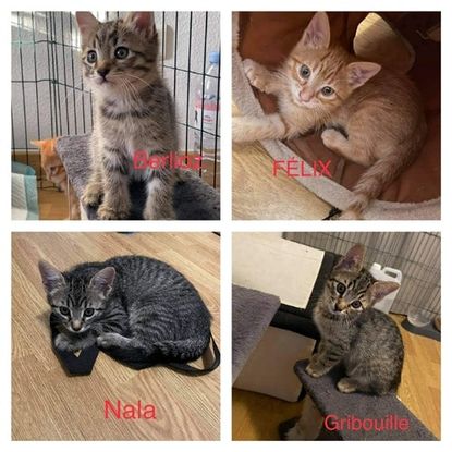 Bonjour bonjour, Nous sommes 4 petits minous de 2 mois et demi et nous sommes bientôt prêt à d’adoption (à partir du 30 juin) alors nous recherchons chacun ou en doublette ou en triplette ou en quadruplette soyons fou !! Une famille pour la vie ♥️ Nous sommes 3 tigrés (Berlioz, Gribouille et la petite Nala) et un petit roux ( Félix) Nous sommes un peu peureux pour nos début, mais nous nous laissons câliner et remplir de bisous sauf Félix qui n’a peur de rien!! Nous sommes en pleine forme, très joueurs mais surtout magnifiques !!! Réfléchissez bien avant de nous adopter, car nous voulons plus retourner dans la rue s’il vous plaît !!! Nous sommes chez notre nounou Floriane à Saint Vallier (26240) n’hésitez pas à la contacter pour une demande sérieuse et d’autres photos au 0672294853. Berlioz est réservé.