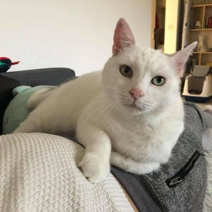 Il vient souvent demander des câlins et s'allonger sur son humain pour une séance de papouilles.