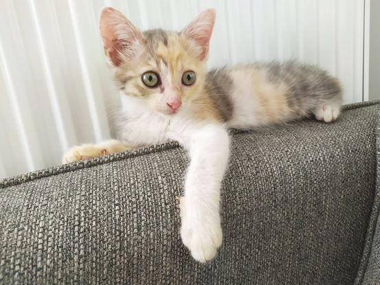 La petite bouille adorable de Tandem vous fera craquer ! Elle est très demandeuse de câlins, et vient souvent nous voir en ronronnant pour réclamer plein de caresses. Elle est très patiente, douce et gentille. C'est la moins aventurière de la fraterie, et attend que ses soeurs explorent l'environnement ou tout objet inconnu avant de s'y aventurer. Pour cette raison, une adoption avec sa soeur jumelle Idem serait préférable. Elle est assez timide mais reste quand même sociable une fois qu'elle est à l'aise. Une fois en confiance, elle adore se blottir contre ses humains! Elle se sentira probablement bien dans un foyer avec des enfants.