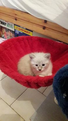 Ambre est une très jolie petite chatonne qui atteindra ses 3 mois mi juillet, câline, un rien timide. Il lui faudra un petit temps d'adaptation. Elle est visible chez sa famille d'accueil à Bondy 93