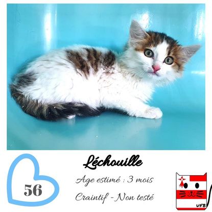 Léchouille est un mâle de 3 mois craintif (un comportement normal en fourrière) qui vous attend dans une fourrière du 56. ATTENTION SORTIE AU PLUS TARD LE 2/07/2021 (avant euthanasie) !