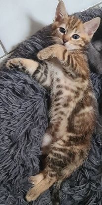 Elle adore les caresses et les gros câlins. Très sociables avec les autres chatons, pas encore tout à fait avec les chiens.