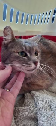 C'est une petite minette curieuse mais réservée. Elle se laisse caresser et ronronne mais doit se sentir en sécurité. Elle est ok avec les chats et les enfants. Ententes chiens inconnues.