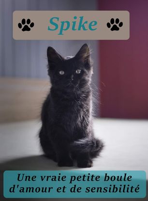 Le petit Spyke est un chaton tout en finesse : un peu timide au départ, il se montre rapidement très curieux et joueur. Sans le savoir, c’est un vrai petit clown, de quoi réjouir sa famille.
