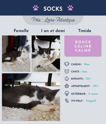 Bonjour, moi c'est Socks, jeune chatte de un an et demi.