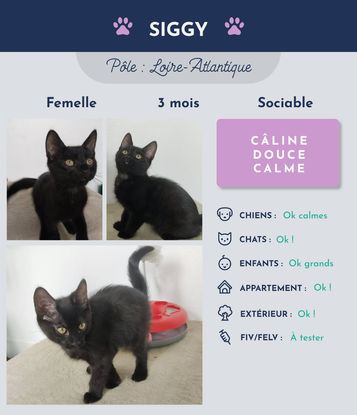 Chalut, moi c'est Siggy ! Je suis une jolie femelle de tout juste 3 mois.