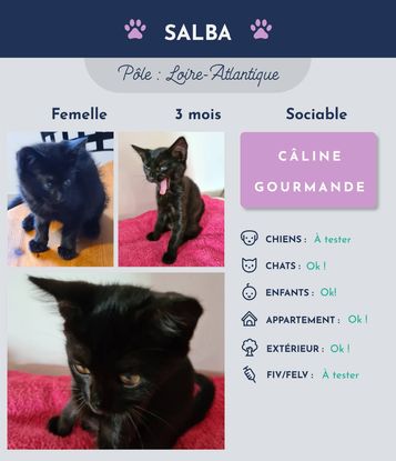 Chalut ! Moi je m'appelle Salba, je suis une petite femelle de 3 mois.