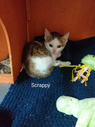 SCRAPPY est un mâle blanc et tigré
