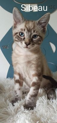 Bonjour, moi c'est Sibeau ! Je suis un petit mâle de 2 mois et demi. J'ai été récupéré dans un mauvais état mais grâce à mes tatas et à ma maman chat d'adoption je me suis vite rétablit.