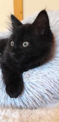 Salto : mâle noir, poil mi-long. "Salto est câlin mais plus indépendant et plus joueur , il a une passion pour les ordinateurs !