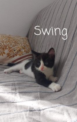 Voici swing petit chaton né le 18 avril 2021. Très sociable et plein d’énergie, Swing est un chaton bien dans ses patounes. Il est câlin et vient spontanément chercher les caresses. Là où vous serez il sera ! Il sait très bien communiquer : le « non » entraine chez lui un léger coup de patte doux et délicat en signe de protestation ! Swing est tout gentil, intelligent, curieux et vif. Il attend un foyer pour la vie à Valence (26000), chez Mélina : 06 63 71 55 51 (1er contact par sms à privilégier). Montant de la participation : 100€
