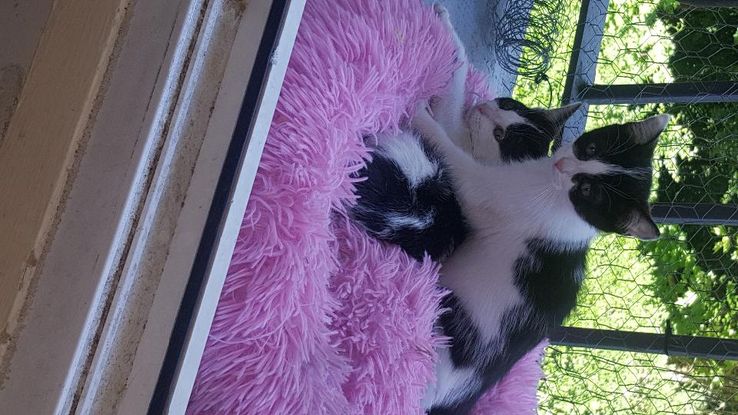 Safir est une gentille petite chatonne de 3 mois et demi, joueuse et câline. Robe : noire et blanche. A droite sur les photos