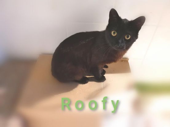 Mâle noir né en Janvier 2021, Roofy est devenu aveugle à cause du coryza. En soin pendant de longues semaines dans sa famille d'accueil, les problèmes de santé sont maintenant de l'histoire ancienne. Seul son handicap reste, faisant de Roofy un chat très spécial.