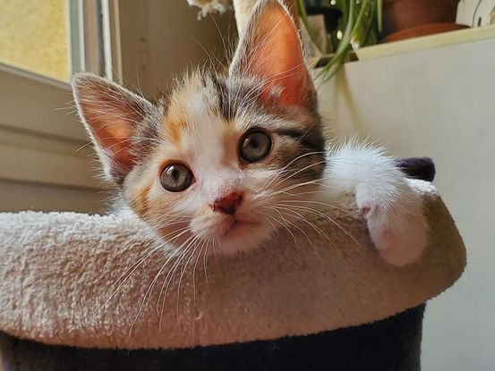 Enolla est une femelle tricolore d'environ 4 mois.