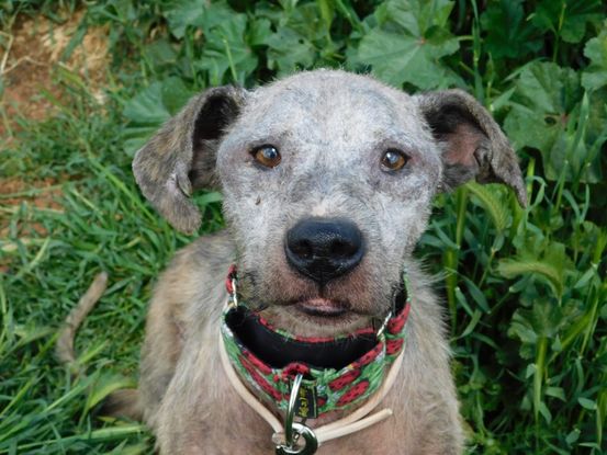 Merce est un pur amour, d'une grande tendresse, un délice. Elle est calme, docile, gentille, agréable. Elle apprécie tout geste aimable, de n’importe qui, et elle ne montre que de l’émotion, de la délicatesse et de l’affection. Voir les marques sur son corps, ses blessures, son mauvais état physique nous fait haïr ces êtres humains qui en sont responsables. Son corps raconte son histoire : mettre au monde beaucoup de portées, la solitude et l'abandon, une mauvaise alimentation, un manque de soins minimaux, l’état dans lequel elle a été trouvée ne s'oublie pas... pauvre Merce, quelle vie horrible. Elle nous remplit d'émotion quand elle lève ses petites pattes pour nous saluer et montrer sa gratitude, même si elle est expansive et qu'elle ne mesure pas sa force, nous nous en fichons, nous aimons cette Merce, celle qui a envie de se lever, de vivre. Il a fallu beaucoup de temps pour améliorer son état physique, mettre en place les soins et les traitements, mais ses poils repoussent petit à petit et nous voyons une chienne noble, avec une petite tête grise et de petits yeux sages. Se promener avec elle est une autre des choses qui nous enchantent : elle marche à notre rythme, attentive, parfaite. Est-ce que ça réveille en elle le souvenir d'une époque heureuse ?