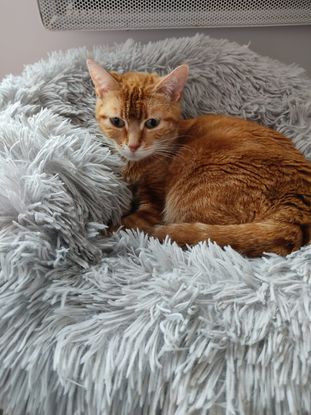 Née d’une fratrie de 7 , j’ai été trappé un mois après 5 de mes frères et sœurs. Je suis arrivée dans ma famille d’accueil en novembre, et il m’a fallu du temps pour comprendre qu’elle ne me voulait pas de mal. Aujourd’hui, après bientôt 8 mois, je lui fais confiance, apprécie ses caresses qui me font ronronner. Et puis le gîte et le couvert sont fournis !! Quel pied pour moi qui ai connu la survie dehors avec tous les dangers que connaissent bien des chats errants.