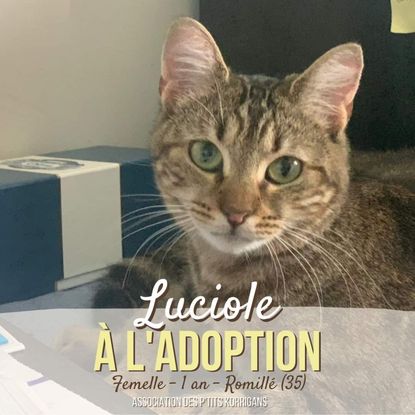 Elle est prête à trouver sa famille pour la vie : une famille patiente et douce qui lui laissera le temps qu’il lui faudra pour s’adapter, et qui la laissera aller à son rythme. Luciole serait ravie d’avoir un ou deux congénères avec qui partager son quotidien et ses parties de jeu.