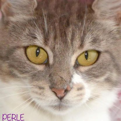 PERLE a une petite particularité qui fait son charme : elle a une queue un peu courte ce qui n'enlève rien à cette belle minette.
