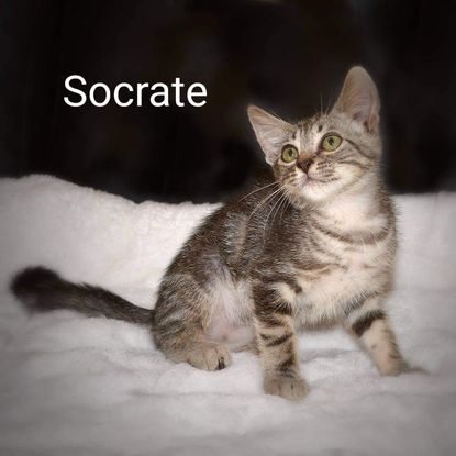 SOCRATE est un petit chaton d'environ 3 mois, câlin et qui aime beaucoup jouer avec un petit copain.