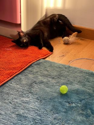 Velours apprécie aussi les caresses ? Notre petite perle noire à la fourrure soyeuse saura vous tenir compagnie ? Elle adore les calins et se met même sur le dos pour se faire gratouiller le bidou par sa FA !