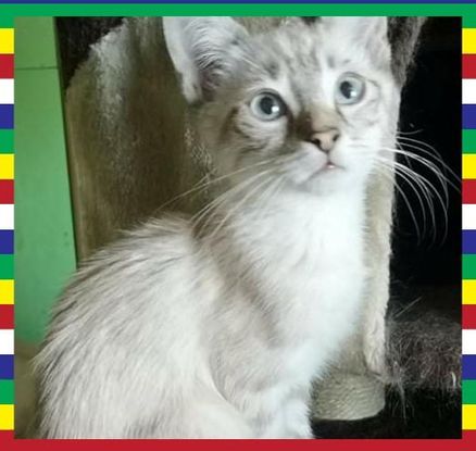 SIAM, frère de Sissi, Ficelle et Prince, est un peu craintif au premier abord mais très joueur. Son magnifique pelage blanc et gris, ses beaux yeux bleus vont vous faire craquer.