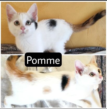 Pomme est arrivée début juin avec sa soeur Prune qui ont été trouvées.