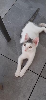 Je me nomme Grisou je suis un chaton de trois mois joueur, très câlin .