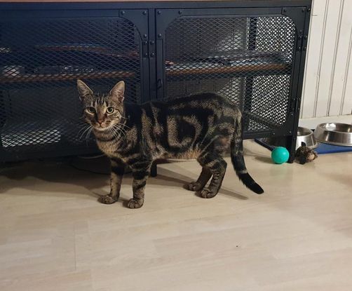 Attrapé dans le jardin d'une famille qui nourrit quelques chats errants, Sunny était le plus joueur de son groupe et le plus proche des humains.