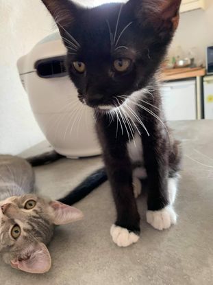C’est un petit chaton très joueur et aussi très têtu . Il aime faire le fou mais également très câlin. Un vrai petit pot de colle.