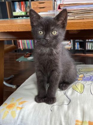Coucou, moi c’est Delhys ! J’ai été trouvée errante avec ma soeur Malaka sur Lyon. Je suis une jolie perle noire de 3 mois très calme et câline. Je suis ok chat et ok enfant.
