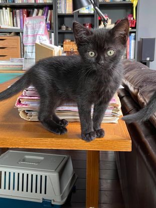 Coucou, moi c’est Malaka ! J’ai été trouvée errante avec ma soeur Delhys sur Lyon. Je suis une jolie perle noire de 3 mois douce, joueuse et câline. Je suis ok chat et ok enfant.
