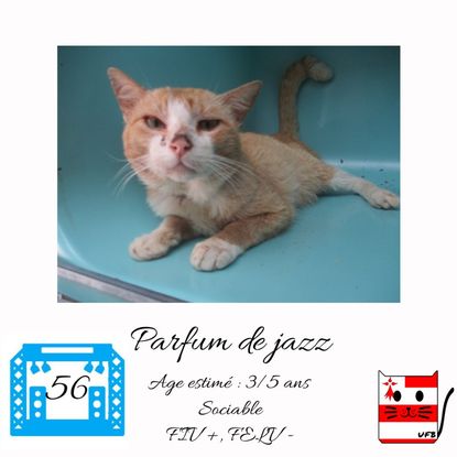 Parfum de Jazz est un mâle de 3-5 ans sociable FIV+ qui vous attend dans une fourrière du 56. ATTENTION SORTIE AU PLUS TARD LE 20/08/2021 (avant euthanasie) !